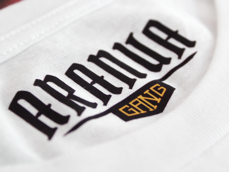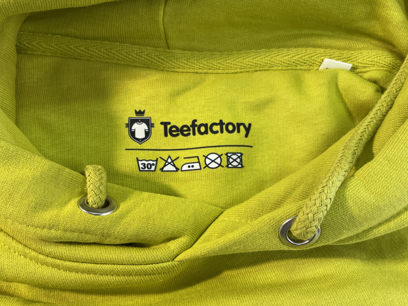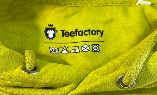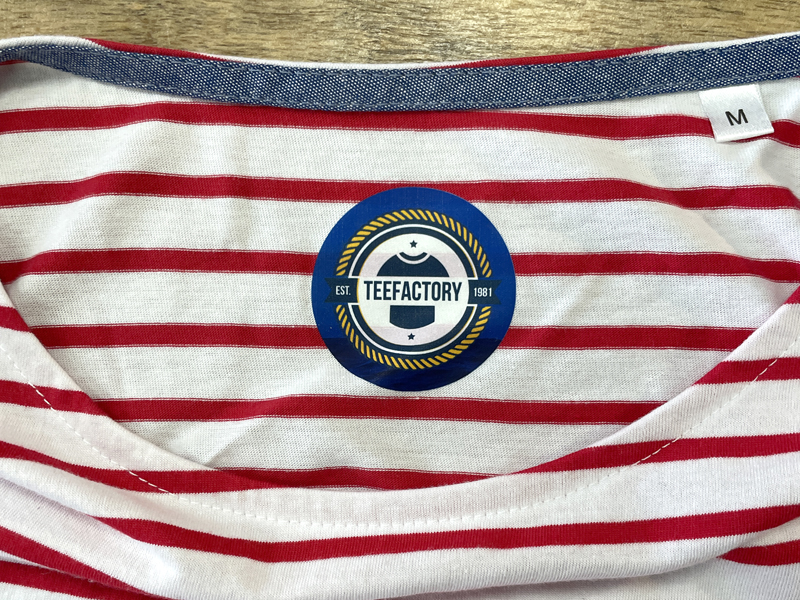 Étiquettes imprimées en transfert DTF sur les vêtements.